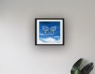 Plakattrykket "Fly fri" er et digitaltrykk på 300 grams naturhvitt papir. Papirstørrelsen er 20 x 20 cm., inkludert 1 cm. hvit kant rundt motivet. Trykkene er signert for hånd. OBS: trykket selges uten ramme.